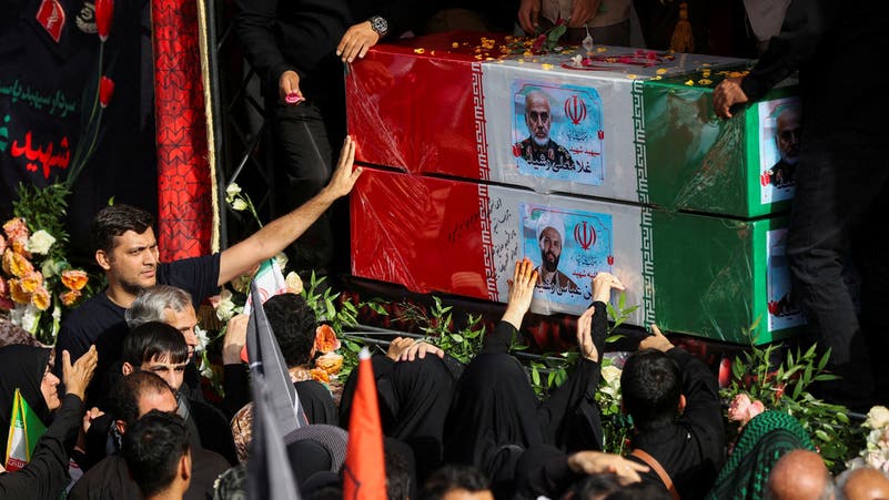 Images showed coffins draped in Iranian flags and bearing portraits of the deceased commanders in uniform near Enghelab Square in central Tehran.