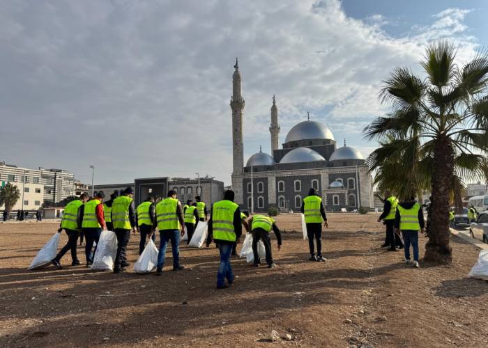 The volunteer group, made up of Homs residents, began an initiative to clean and repair the mosque and its surroundings, as part of a series of activities aimed at restoring the city to its former glory after the destruction caused by the war.